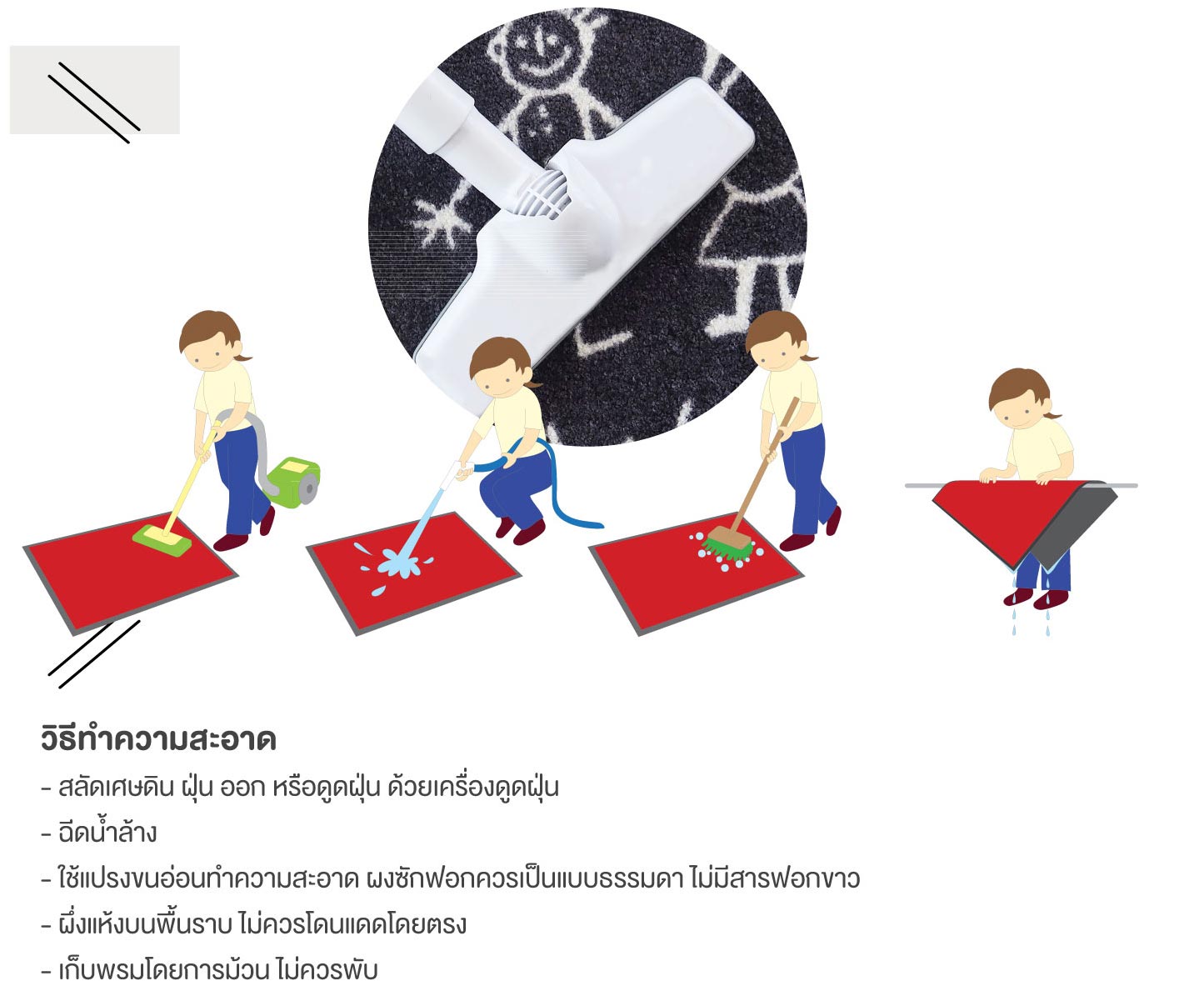 - ฉีดน้ำล้าง- ใช้แปลงขนอ่อนทำความสะอาด ไม่ควรใช้สารฟอกขาว