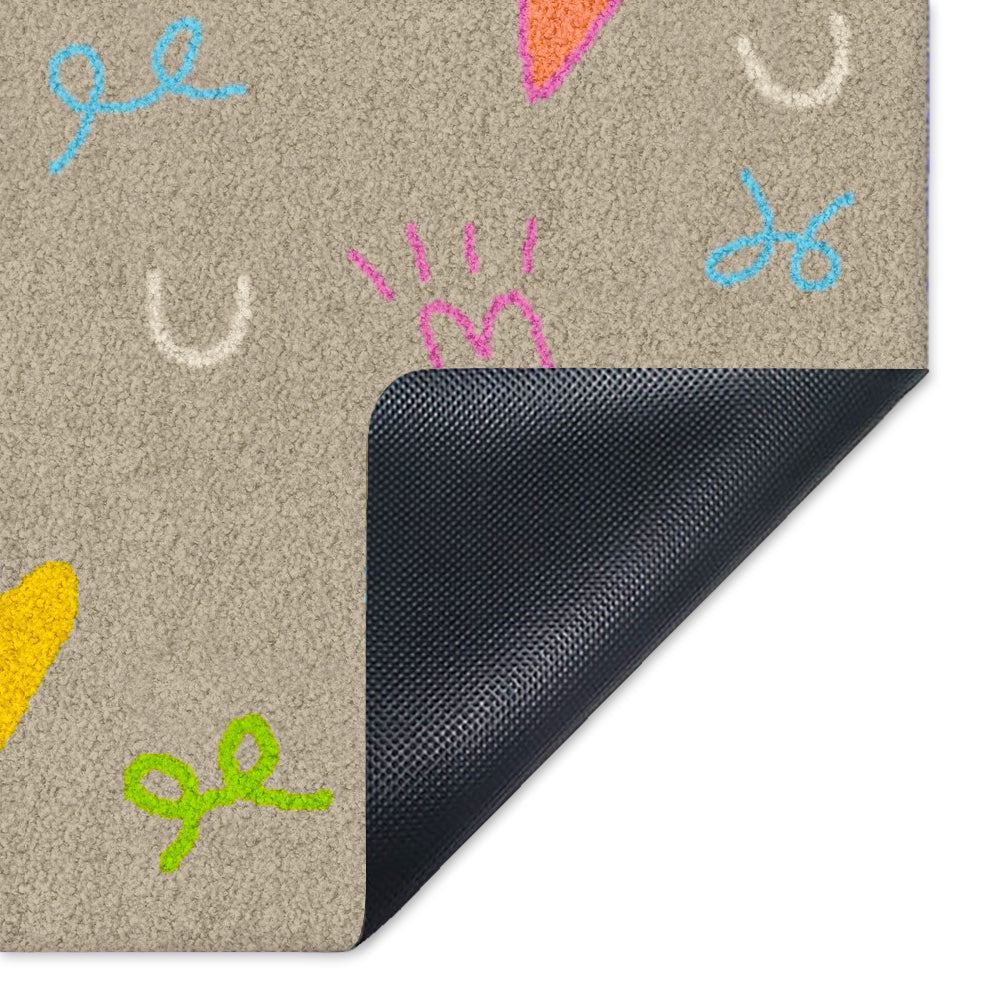 The surface is made from 100% printed nylon with a worldwide export standard. Passed the anti-slip and fire retardant test.