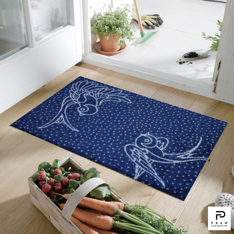 Home decoration carpet with anti-slip properties from the PRAW brand, unique design, high quality, Japanese and European export standards, color printed all the way to the base of the carpet. Carpet hair doesn't shed. Always stays fresh even after washing. Does not leave stains on the floor (no glue is used), adheres well to the floor, is smooth on the floor, does not wave, which is a cause of tripping and falling. Dust trapping efficiency and high humidity The material is flexible. and prevents slipping very well