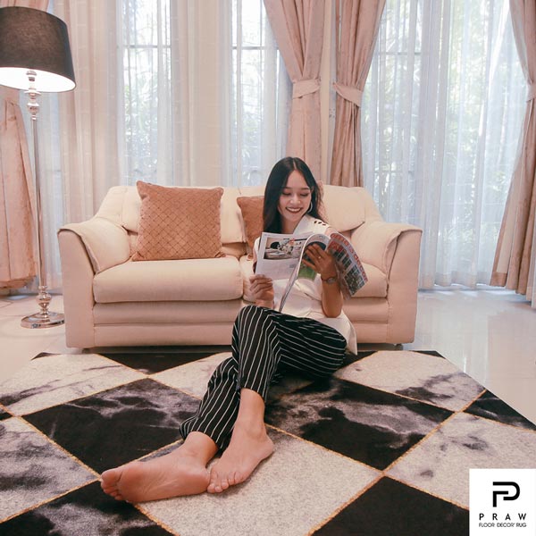 Home decoration carpet with anti-slip properties from the PRAW brand, unique design, high quality, Japanese and European export standards, color printed all the way to the base of the carpet. Carpet hair doesn't shed. Always stays fresh even after washing. Does not leave stains on the floor (no glue is used), adheres well to the floor, is smooth on the floor, does not wave, which is a cause of tripping and falling. Dust trapping efficiency and high humidity The material is flexible. and prevents slipping very well