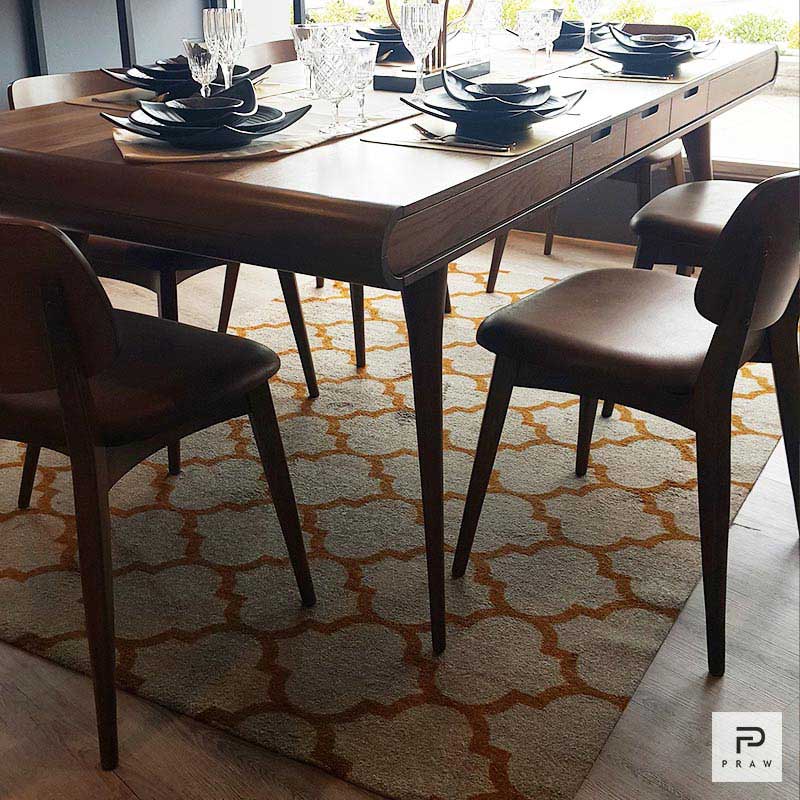 Home decoration carpet with anti-slip properties from the PRAW brand, unique design, high quality, Japanese and European export standards, color printed all the way to the base of the carpet. Carpet hair doesn't shed. Always stays fresh even after washing. Does not leave stains on the floor (no glue is used), adheres well to the floor, is smooth on the floor, does not wave, which is a cause of tripping and falling. Dust trapping efficiency and high humidity The material is flexible. and prevents slipping very well