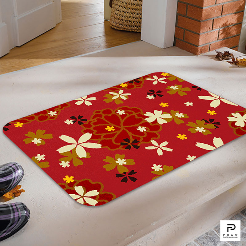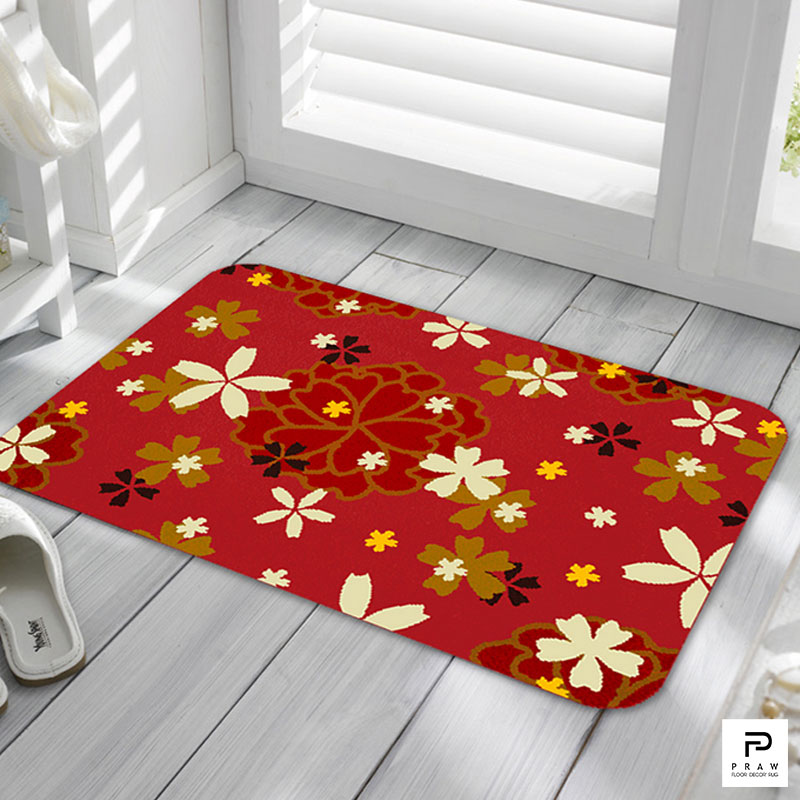 Home decoration carpet with anti-slip properties from the PRAW brand, unique design, high quality, Japanese and European export standards, color printed all the way to the base of the carpet. Carpet hair doesn't shed. Always stays fresh even after washing. Does not leave stains on the floor (no glue is used), adheres well to the floor, is smooth on the floor, does not wave, which is a cause of tripping and falling. Dust trapping efficiency and high humidity The material is flexible. and prevents slipping very well