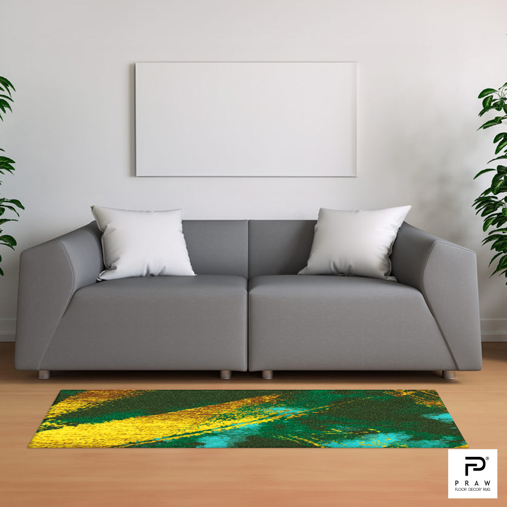 Home decoration carpet with anti-slip properties from the PRAW brand, unique design, high quality, Japanese and European export standards, color printed all the way to the base of the carpet. Carpet hair doesn't shed. Always stays fresh even after washing. Does not leave stains on the floor (no glue is used), adheres well to the floor, is smooth on the floor, does not wave, which is a cause of tripping and falling. Dust trapping efficiency and high humidity The material is flexible. and prevents slipping very well