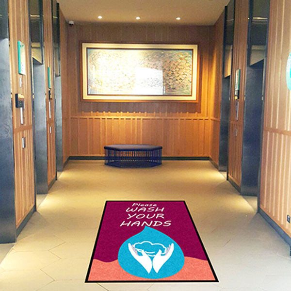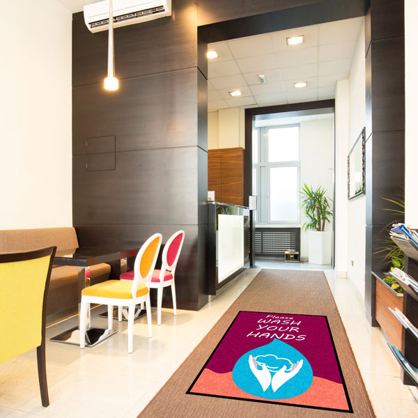 Printed rugs and reminders to “wash your hands” with dust and moisture trapping properties.