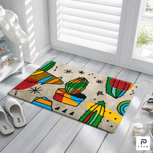 พรมแต่งบ้าน พร้อมคุณสมบัติกันลื่นจากแบรนด์ PRAW ดีไซน์เฉพาะ คุณภาพสูง มาตรฐานส่งออกญี่ปุ่น และยุโรป พิมพ์สีถึงโคนพรม ขนพรมไม่หลุดร่วง คงความสดเสมอแม้ผ่านการซักล้าง ไม่ทิ้งคราบบนพื้น (ไม่ใช้กาว) ยึดเกาะพื้นได้ดี เรียบติดพื้น ไม่เป็นคลื่น ซึ่งเป็นสาเหตุของการสะดุดล้ม ประสิทธิภาพการดักฝุ่น และความชื้นสูง วัสดุมีความยืดหยุ่น และกันลื่นได้อย่างดี