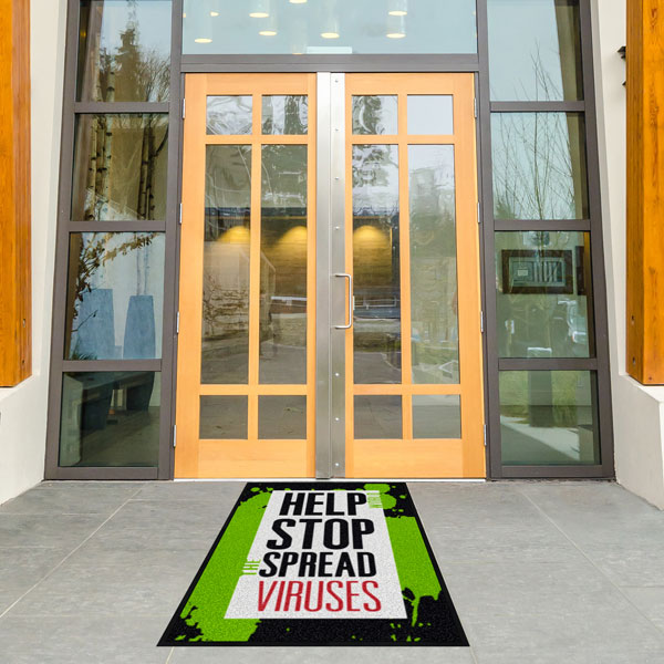 พรมพิมพ์ลาย และข้อความช่วยเตือน ให้ “สวมหน้ากาก” พร้อมคุณสมบัติดักฝุ่นและความชื้น