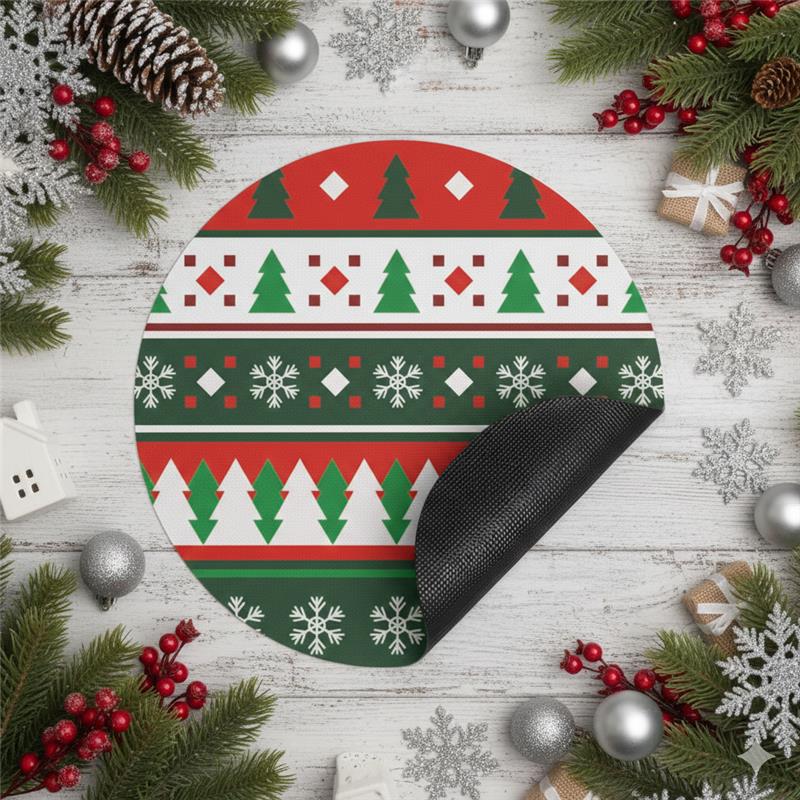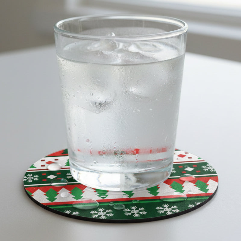 เติมเต็มบรรยากาศแห่งความสุขในเทศกาลคริสต์มาส ด้วยแผ่นรองแก้วดีไซน์ลายน่ารัก ผลิตจากการผสมผสานระหว่าง ผ้าโพลีเอสเตอร์ยอดนิยม และ ยางไนไตร (Nitrile Rubber) ที่มีความยืดหยุ่นสูง ช่วยให้สัมผัสนุ่ม แข็งแรงทนทาน พร้อมปกป้องพื้นผิวโต๊ะจากคราบน้ำและรอยขีดข่วนได้อย่างมีประสิทธิภาพ