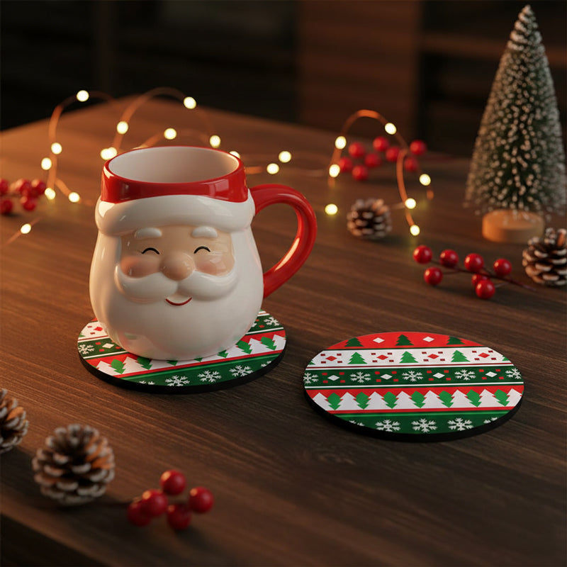 SUB076 ที่รองแก้วคริสต์มาส ขนาด 10x10 cm สำหรับบ้านและคาเฟ่ กันลื่น ซักได้ ทนทาน